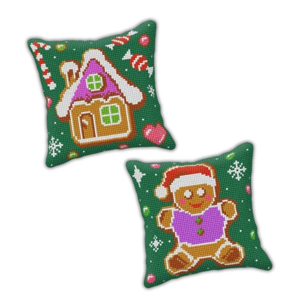 Pakiet 2 zestawów do wyszywania poduszek: Pierniczki