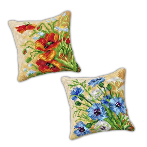 Pakiet 2 zestawów do wyszywania poduszek: Kwiaty polne