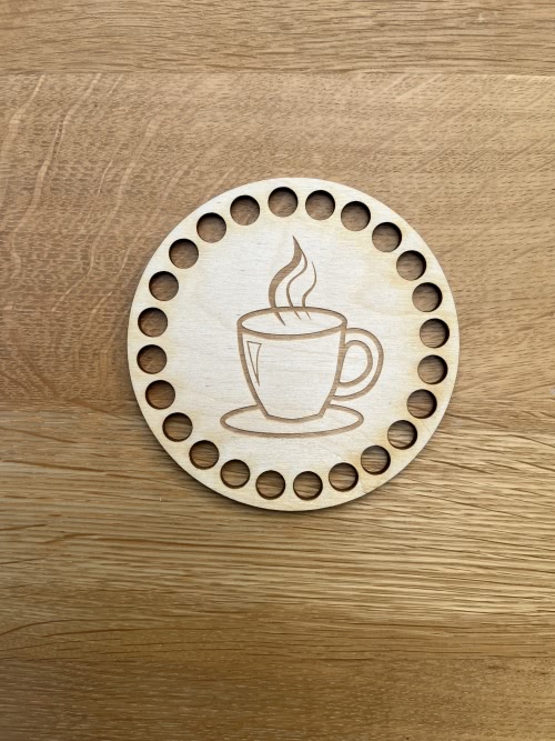Baza ze sklejki z grawerowanym motywem „Filiżanka” to elegancka podkładka do kubka, idealna do wykonania na szydełku ze sznurka poliestrowego. Naturalna sklejka brzozowa o grubości 3 mm gwarantuje trwałość i stabilność, a delikatny grawer dodaje uroku każdemu projektowi handmade.