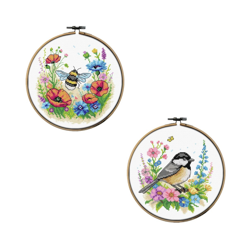Pakiet 2 Zestawów do haftu z tamborkiem, dzięki któremu samodzielnie wykonasz obrazki na ścianę.
